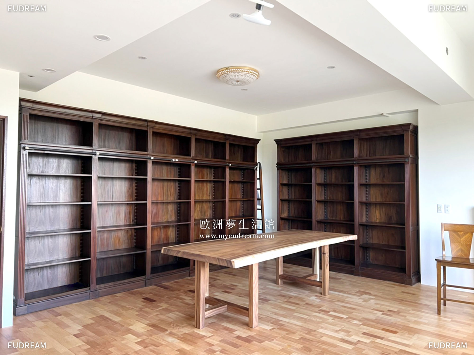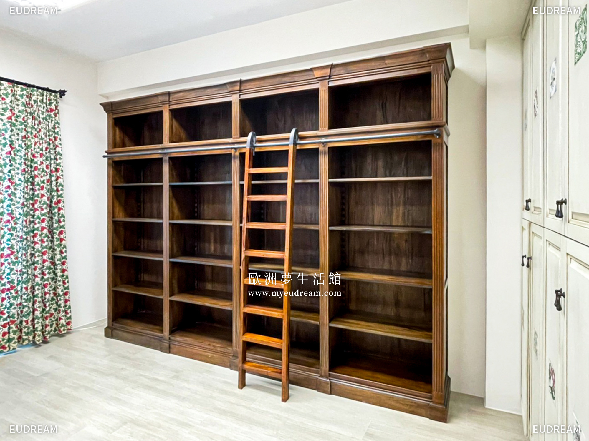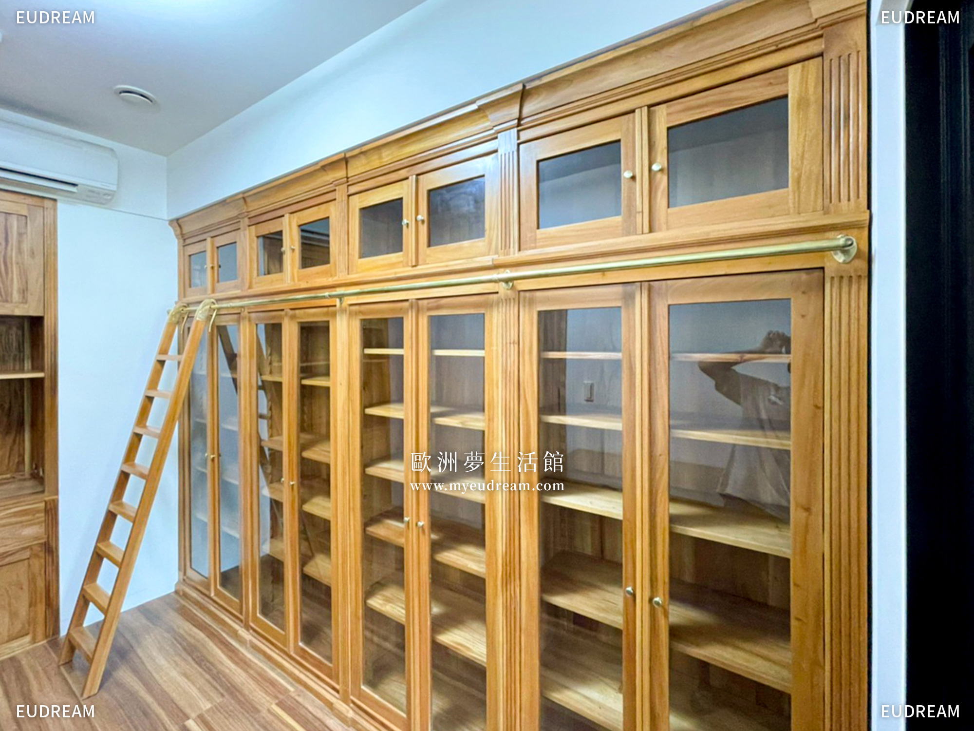 真正100%全實木書櫃,從櫃體到爬梯,皆採用國家認證砍伐的桃花心木製作!