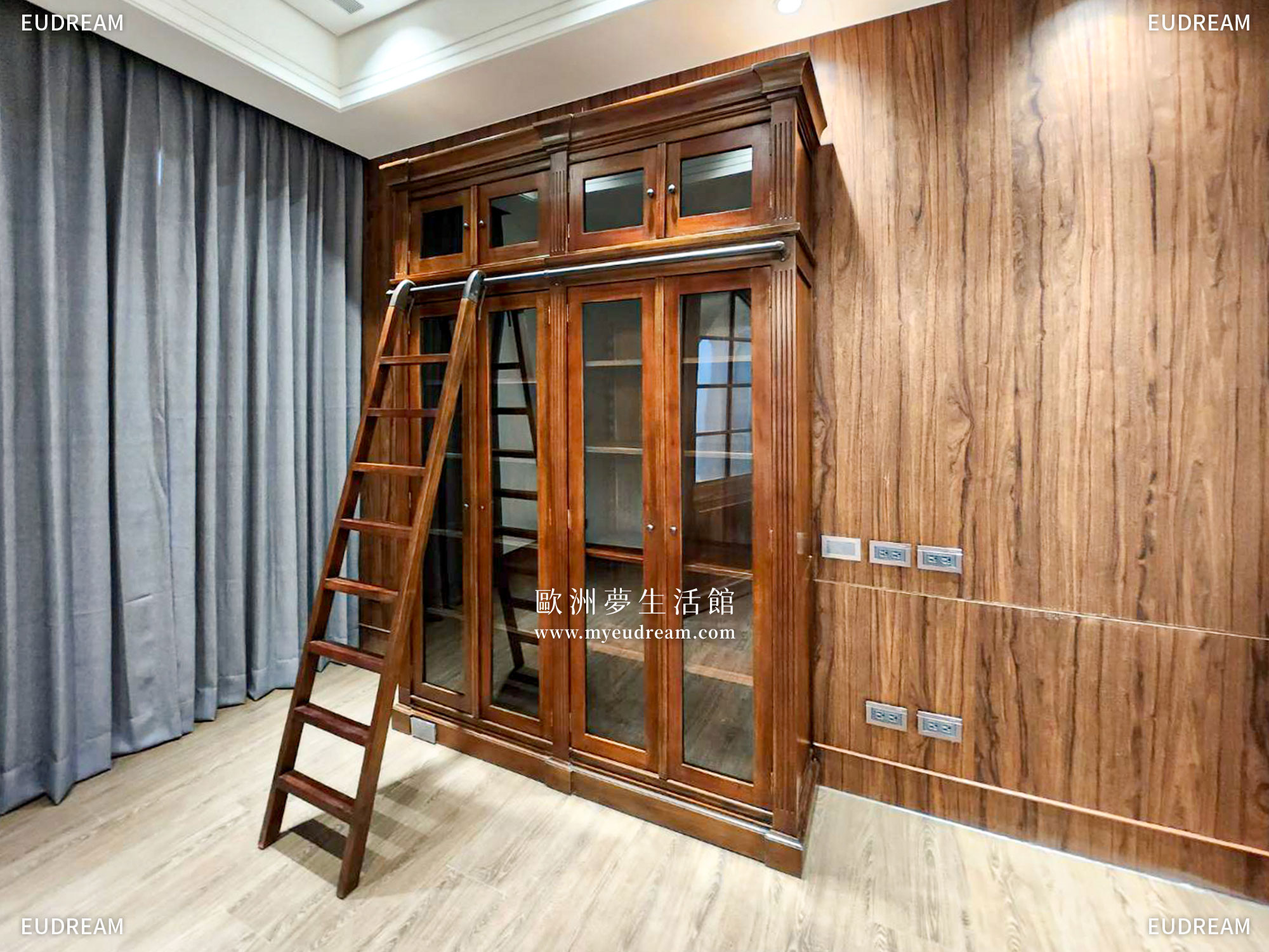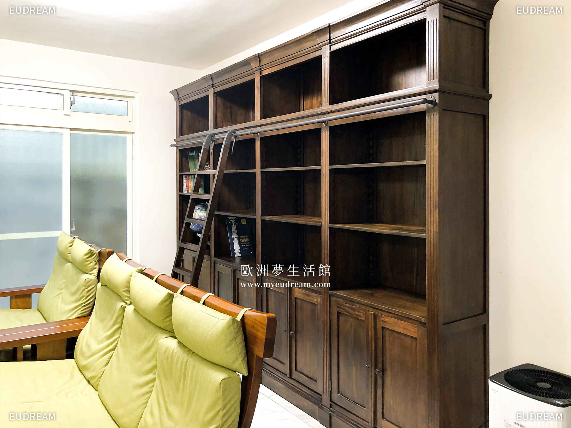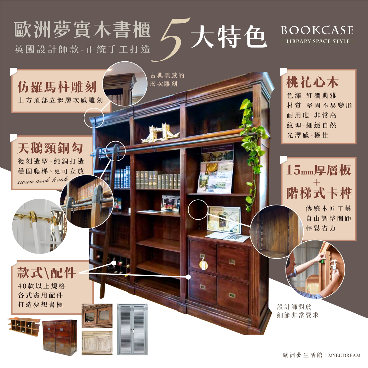 真正100%全實木書櫃,從櫃體到爬梯,皆採用國家認證砍伐的桃花心木製作!