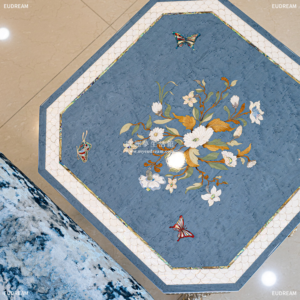 彩貝花苑-貝殼鑲嵌小方几